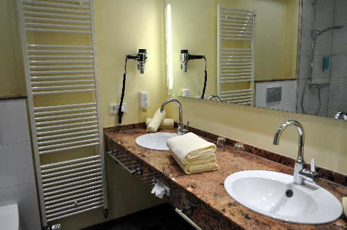 Jedes Zimmer verfügt über ein modernes Bad. Ihr eigner kleiner Wellnessbereich mitten im Weinland von Pfalz und Elsaß, im Schweigener Hof.